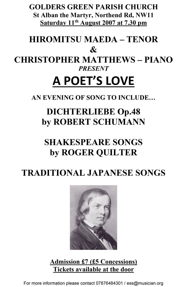11 August 2007 Golders Green Parish Church (Piano & Tenor: Hiromitsu Maeda) Programme