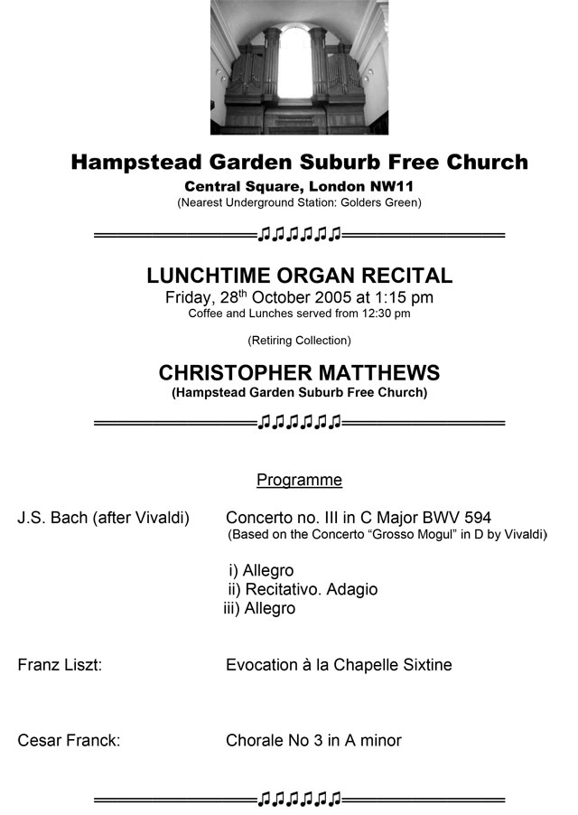 28 October 2005 Hampstead Garden Suburb Free Church (Organ) Programme