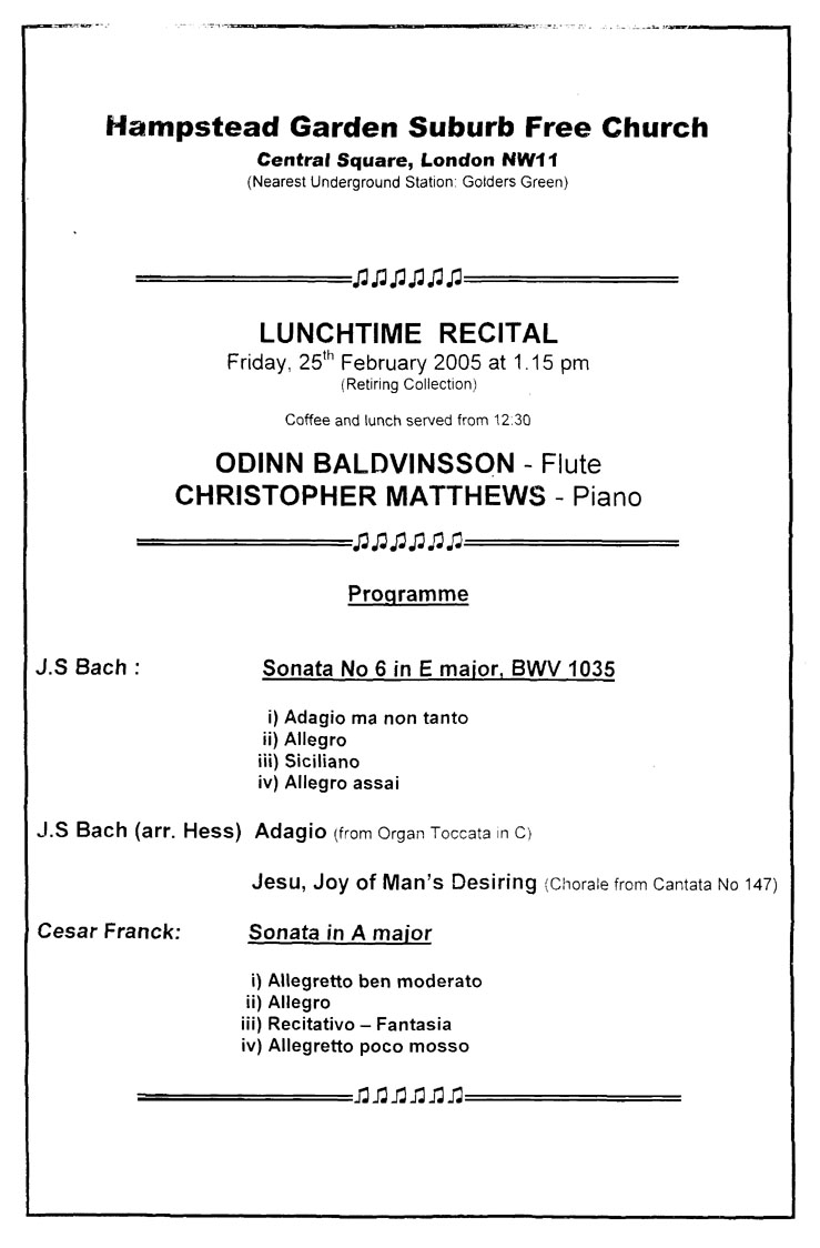 *25 February 2005 Hampstead Garden Suburb Free Church (Piano & Flute) Programme
