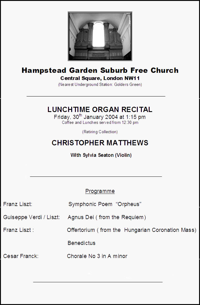 30 January 2004 Hampstead Garden Suburb Free Church (Organ) Programme