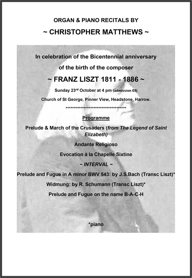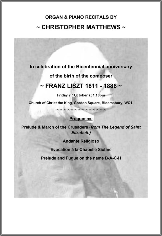 2 March 2001 Christ the King Church, Bloomsbury, London (Organ) Liszt and Franck