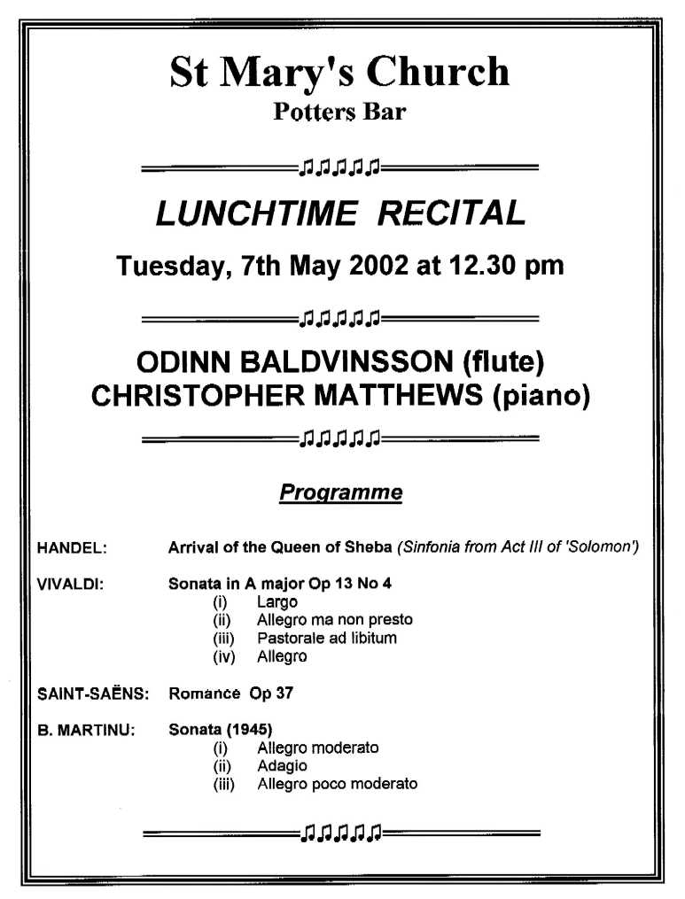 *7 May 2002 St Mary's Church, Potters Bar (Piano & Flute) Programme