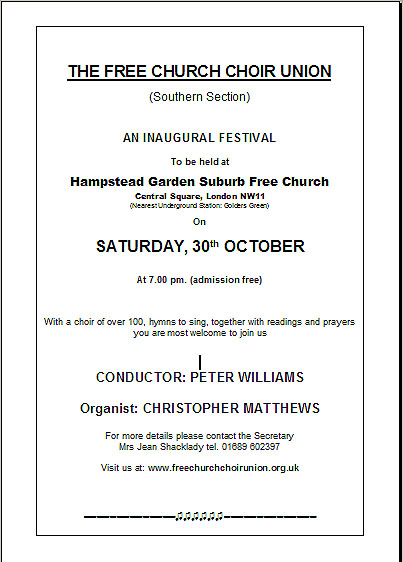 30 October 2004 Hampstead Garden Suburb Free Church (Choir Festival) Details