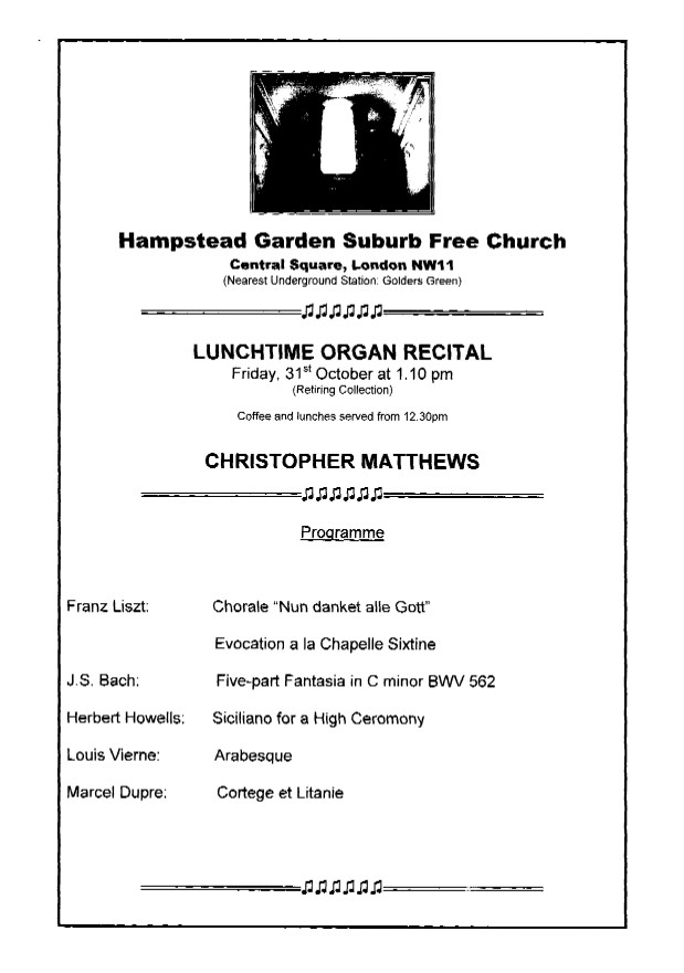 31 October 2003 Hampstead Garden Suburb Free Church (Organ) Programme