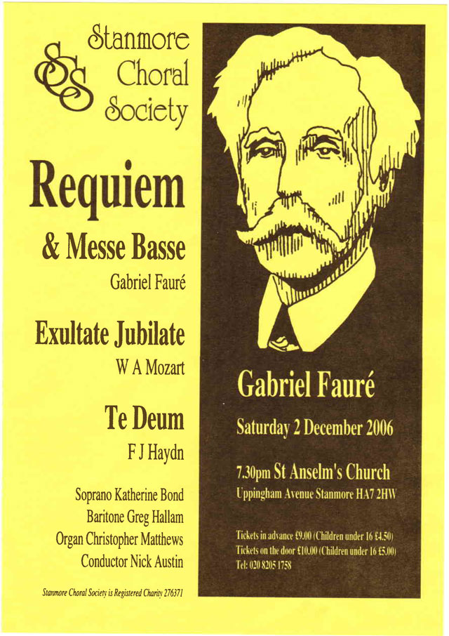 2 December 2006 Stanmore Choral Society (Organ) Details